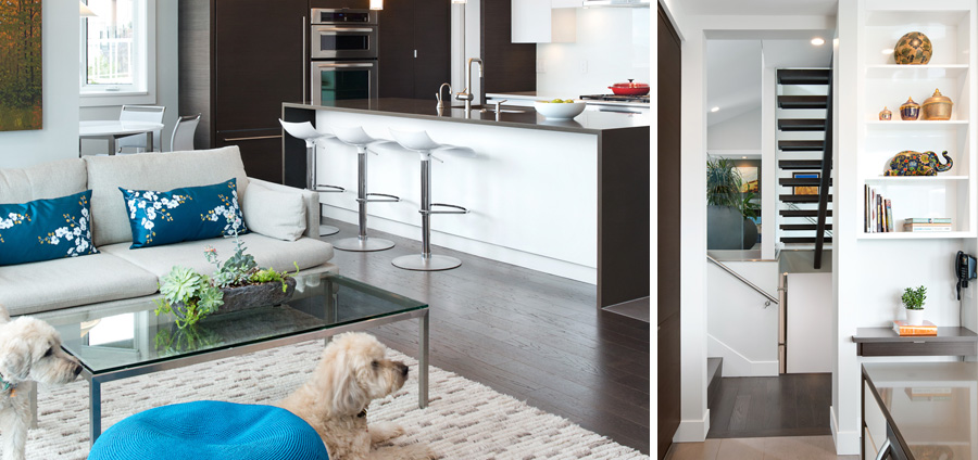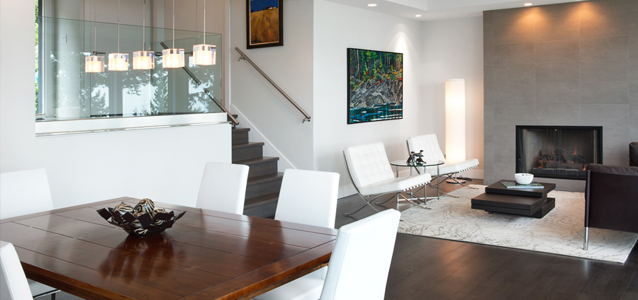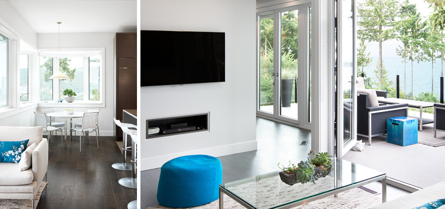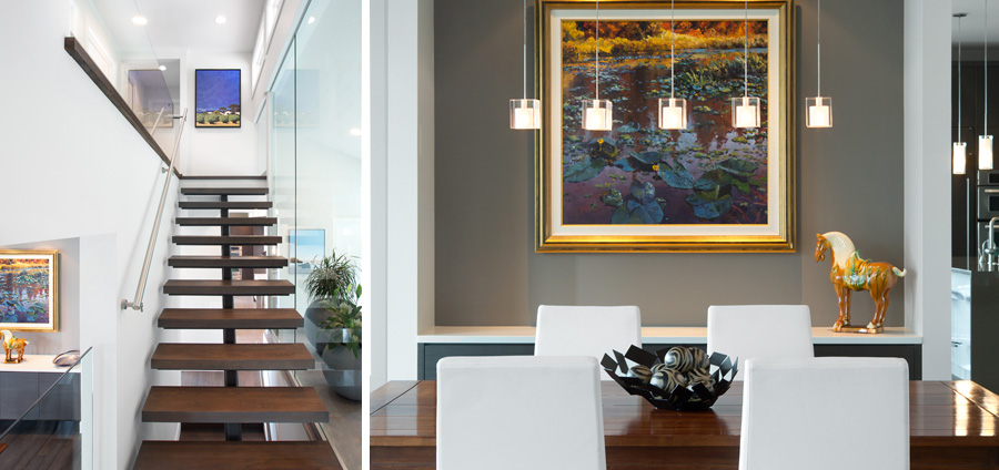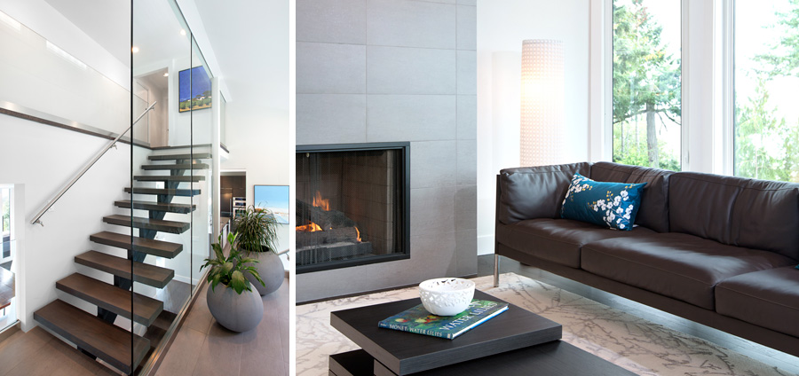 Upgrades to this contemporary west coast home bring simplicity, light and improved movement. Stairs were reconfigured and opened with glass, wood and steel – giving visibility from the entrance through to the living spaces, where windows openings were enlarged to capture the ocean and islands beyond. Custom millwork placed in the kitchen increased function and aesthetic, and created a workspace situated towards the expansive west coast view. All finishes were upgraded and spaces opened considerably. Situated just outside a major city, this home now conveys the sense that it is a place of retreat, perfect for an owner who aspires to study art.